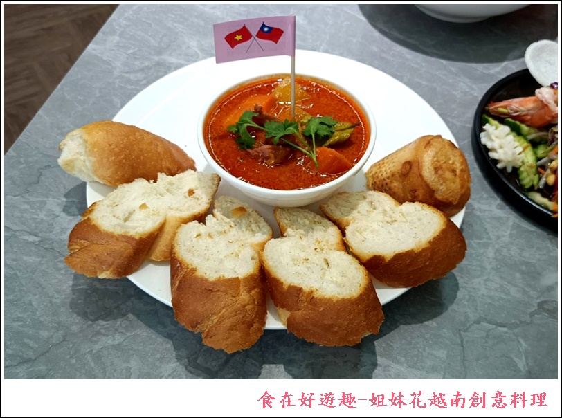 越式料理在台灣遍地開花,姐妹花越南料理經過搬遷後空間變大了,用餐舒適感提升良多,餐點還是一樣的美味,特別喜歡烤得酥香的法國麵包沾紅咖哩醬汁,真的好吃得一口接著一口,多次回訪都為了它,好菜上桌快來去瞧瞧~