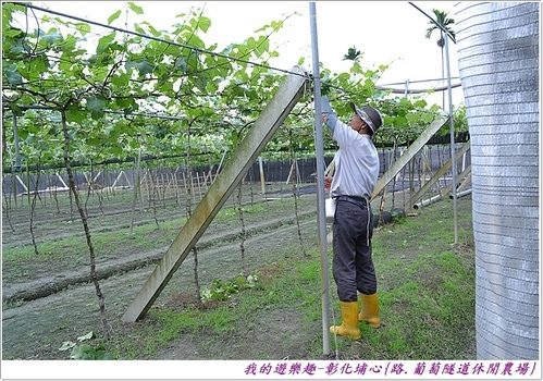 園區的主人正在做補強固定葡萄藤跟棚架的工作。當然,我們也順便跟