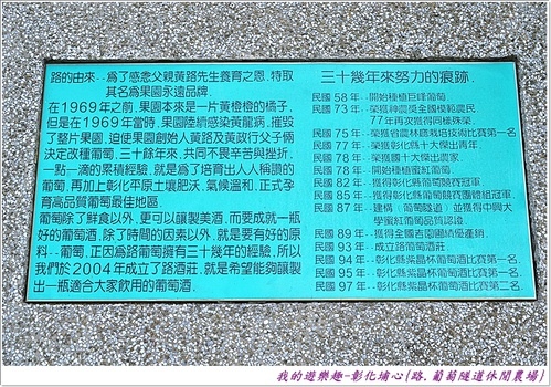 酒莊庭園裡有一個路.葡萄農場由來的介紹石碑,這上頭介紹有園區