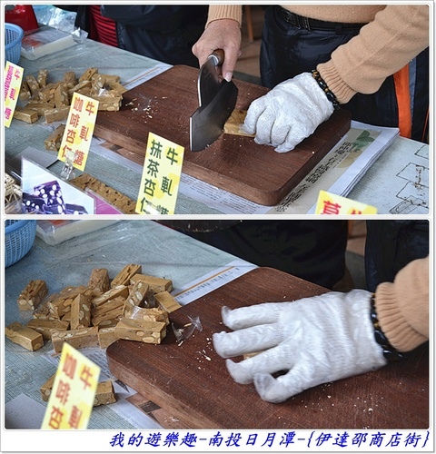一旁還有原味抹茶玫瑰待裁切的牛軋糖成品。看樣子店家是想
