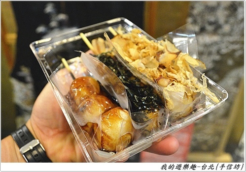 趁著老婆跟女兒到處試吃,我便轉身去拿取剛才預定的日式串燒團子