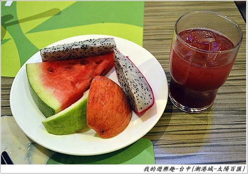 再加上水果及飲料洛神花茶,我們一家真的已經飽到吃不下東西了..![]()