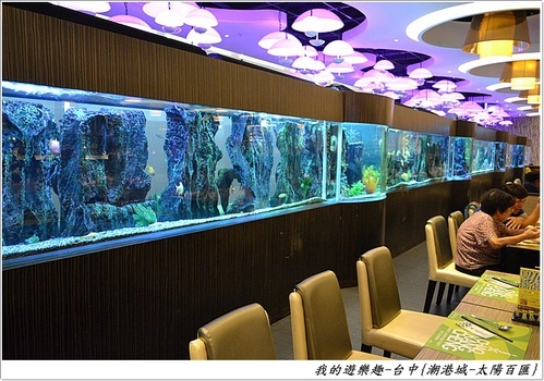 瞧,有一座跟餐廳內用餐空間同長度的水族箱就在一旁,這簡直就