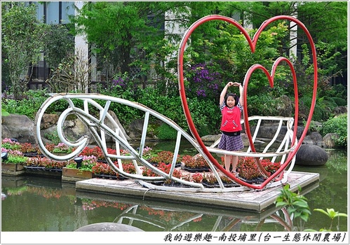 啥 !? 拍照的同時女兒竟自己亂跑跑到那雙心船造型的造景區了,
