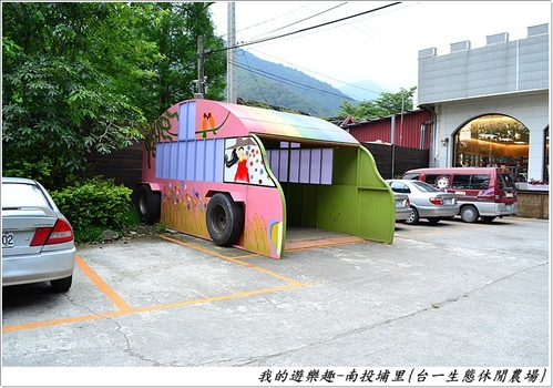停車場裡這個彩繪車庫是台一農場專車的停車處,獨一無二的