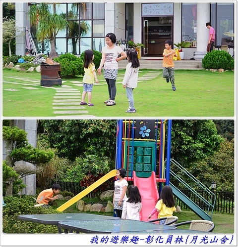 餐廳外頭的用餐區及草地上的兒童遊戲區