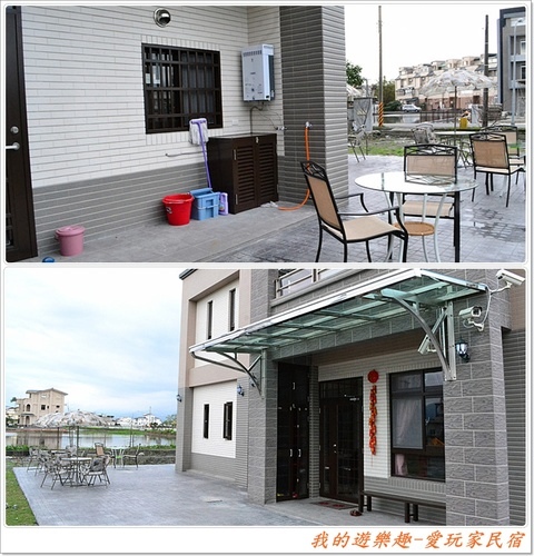 民宿外頭還有休閒的座位區喔 !! 而一旁的住屋大門就是民宿的入口啦 ~