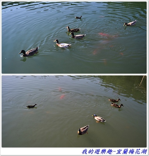 果然飼料一丟,魚跟鴨子馬上齊湧而上,爭相搶食啊 ~ 不過,還是