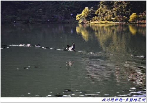 在湖旁等待想捕捉雁鴨飛行時的身影,結果是拍到了,但卻是模糊的
