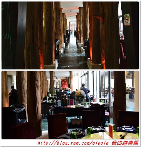 這走道兩旁的木頭支柱還蠻壯觀的裡頭的用餐區位置規劃的也