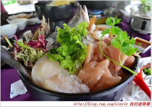 海陸鍋的食材相當豐富,鮮魚、(真)干貝、鮮蝦、蟹肉、雞肉及