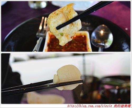 火鍋肉片我們選的是雞肉,經烹煮後嚐起來非常嫩Q,咀嚼不了幾