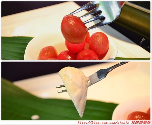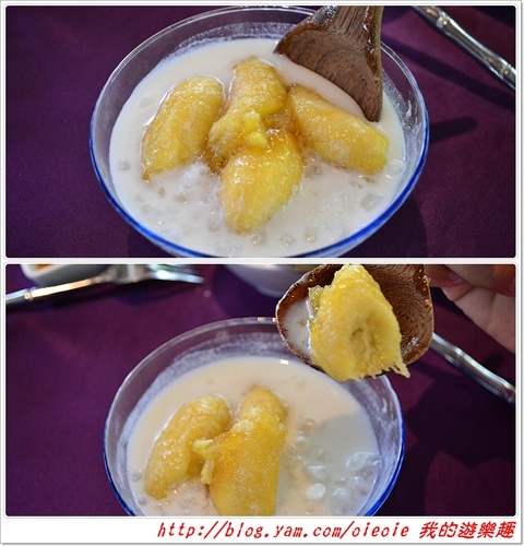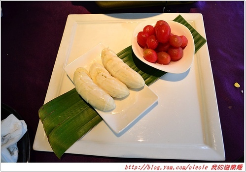 這兩道招待的水果分別是剝皮蜜小番茄及椰奶香蕉 !! 都不錯吃喔 ~