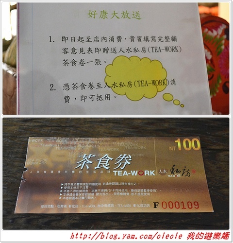 顧客意見表到手一張100元的人水私房的茶食券,算不無小補啊 ~