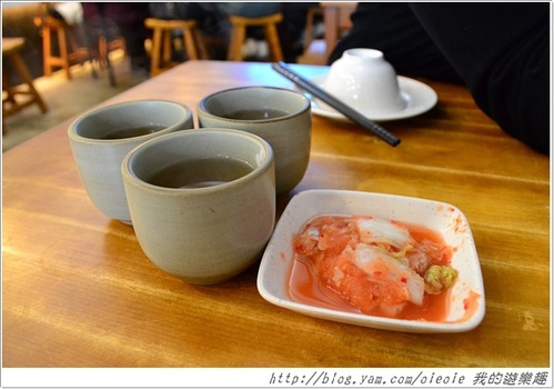 才剛入座服務人員就送上熱麥茶及店家自製的泡菜,麥茶我就