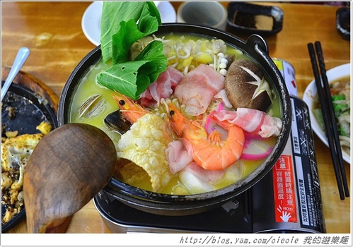 鍋內的食材份量很多,可以說光吃這道餐就飽了,而且它的湯頭