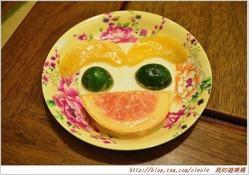 把水果茶內的水果拿出來擺個盤,笑臉迎人,來我的部落格