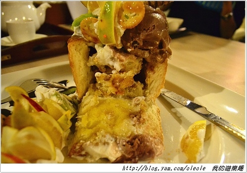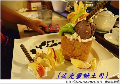 我們已經吃過晚餐了所以只點飲料跟這個蜜糖土司 …..