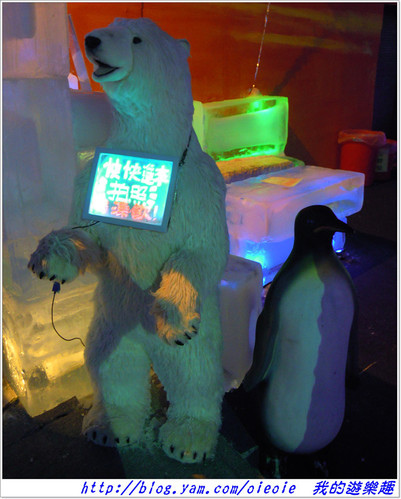 展館內有許多冰雕藝術,如企鵝、愛斯基摩人、北極熊等 …..