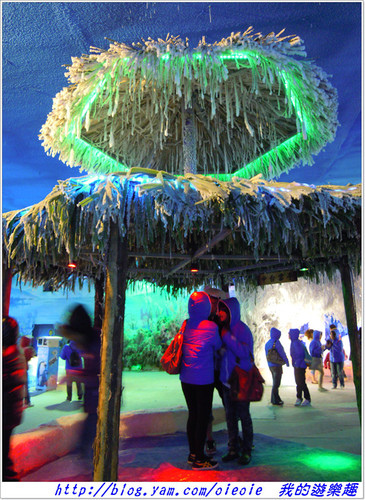 走出戲雪區會看到這算是極地中的涼亭吧 !! 在那紅色的燈