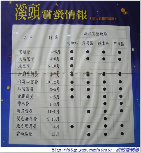 最後送上這張賞各種螢火蟲的月份表給大家,不過看起來好像