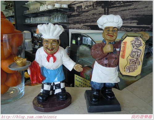 櫃台前的廚師公仔推薦自家的德國豬腳及…….金元寶 !?