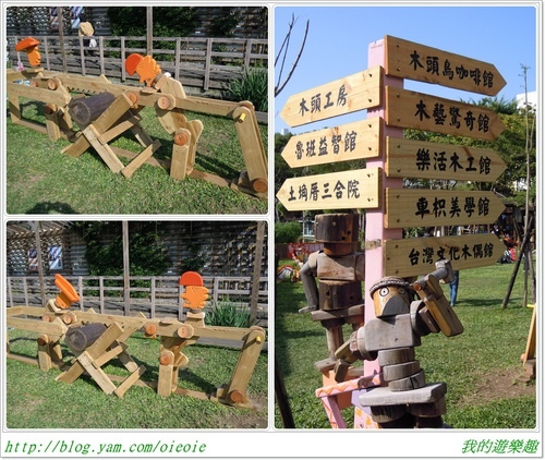 園區導覽牌的一旁看見用木頭打造的伐木工人,試著