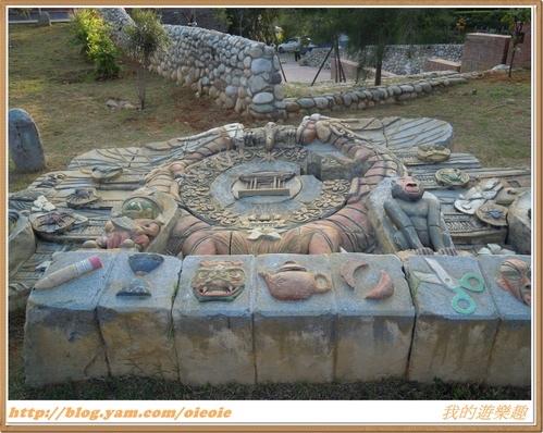 地上的石雕圖騰,嗯 ~~ 有原住民的 FU 喔 !!