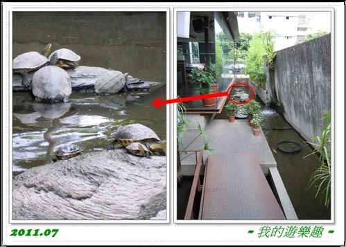 戶外用餐區,還有魚池造景在一旁喔 ~~