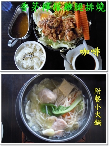 這就是我的餐了,份量也是沒話說,主餐的部份有點像壽喜燒的做法,少少的醬油換成少少的高湯煮熟食物用,當然雞腿肉是事先煮熟的,淋上他們特製的香茅檸檬醬食用,嗯 !有水準 !
