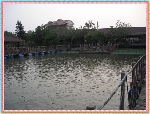 農場裡的大池塘.循木橋走去一旁有池上休閒涼亭